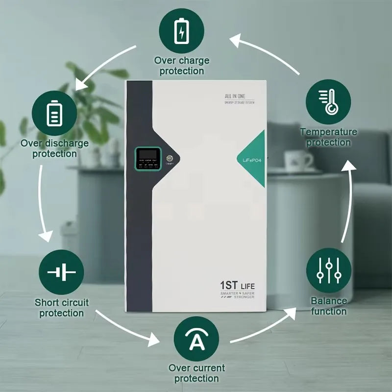 Home energy storage often means headaches: messy wiring from separate inverters/batteries, safety worries, and frequent maintenance. Our wall-mounted 51.2V 100Ah LiFePO4 all-in-one unit solves all this—offering integrated convenience, top-tier safety, and 3x more charge-discharge cycles than lead-acid batteries. What tangible benefits does this bring you? No more hassle with mismatched parts or complicated installations, no more worry about safety risks like battery leaks or overheating, and far fewer replacements.You’ll cut maintenance costs and keep home power steady—whether for outages or solar storage. Choose it, and home energy management becomes stress-free!